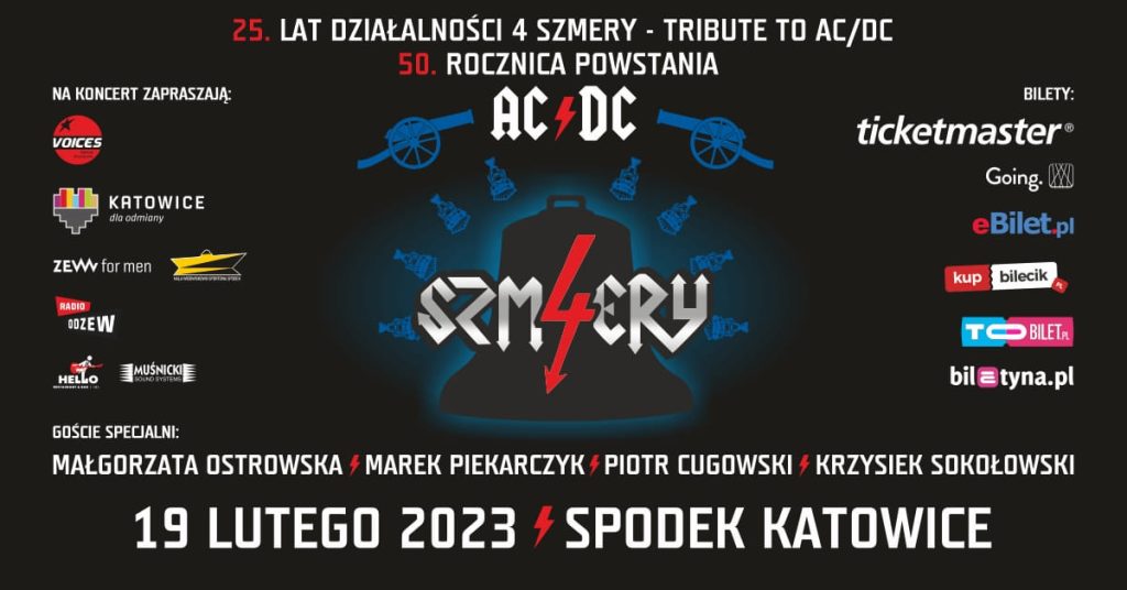 Największe przeboje AC/DC wykonane przez zespół 4 Szmery zabrzmią w katowickim Spodku już 19 lutego 2023 roku. Grupa podczas tego wielkiego wydarzenia świętować będzie ćwierćwiecze istnienia. Nie obędzie się zatem bez niespodzianek!