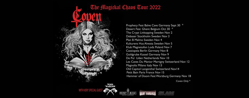 7 listopada w Łodzi (klub DOM) zagra legendarny zespól Coven. Jak napisano w zapowiedzi, będzie to „psychodeliczna podróż po różnych rewirach ciężkiej muzy, z charyzmatyczną Jinx Dawnson w roli przewodnika”.