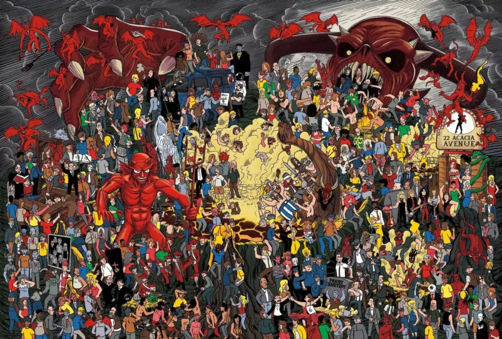 Na 36 stronach książki fani Iron Maiden znajdą 15 obrazów pełnych nawiązań do klasycznych okładek oraz płyt zespołu. Na każdym z nich będzie skrywała się zespołowa maskotka, czyli Eddie. Wszystko będzie utrzymane w komiksowym, rysunkowym klimacie.