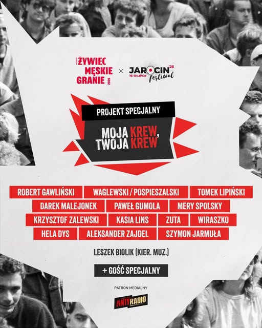 Poznaliśmy szczegóły projektu specjalnego „Moja krew, Twoja krew: Żywiec Męskie Granie x Jarocin”, który zostanie zaprezentowany podczas Jarocin Festiwal 2026 oraz w ramach trasy Żywiec Męskie Granie 2026.