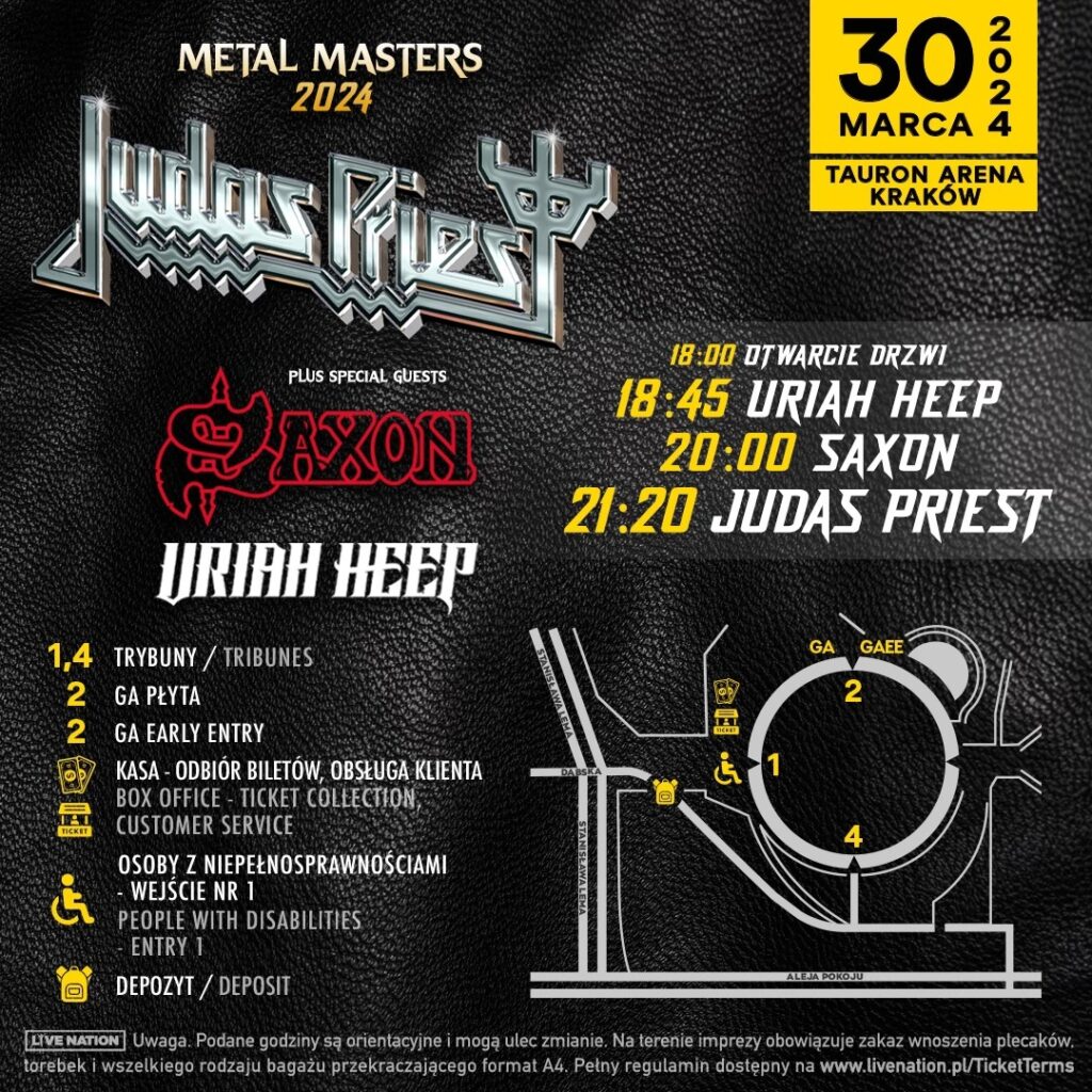 Wielkimi krokami zbliża się polski koncert zespołów Judas Priest, Saxon i Uriah Heep. Właśnie podano rozpiską godzinową i inne ważne informacje organizacyjne.