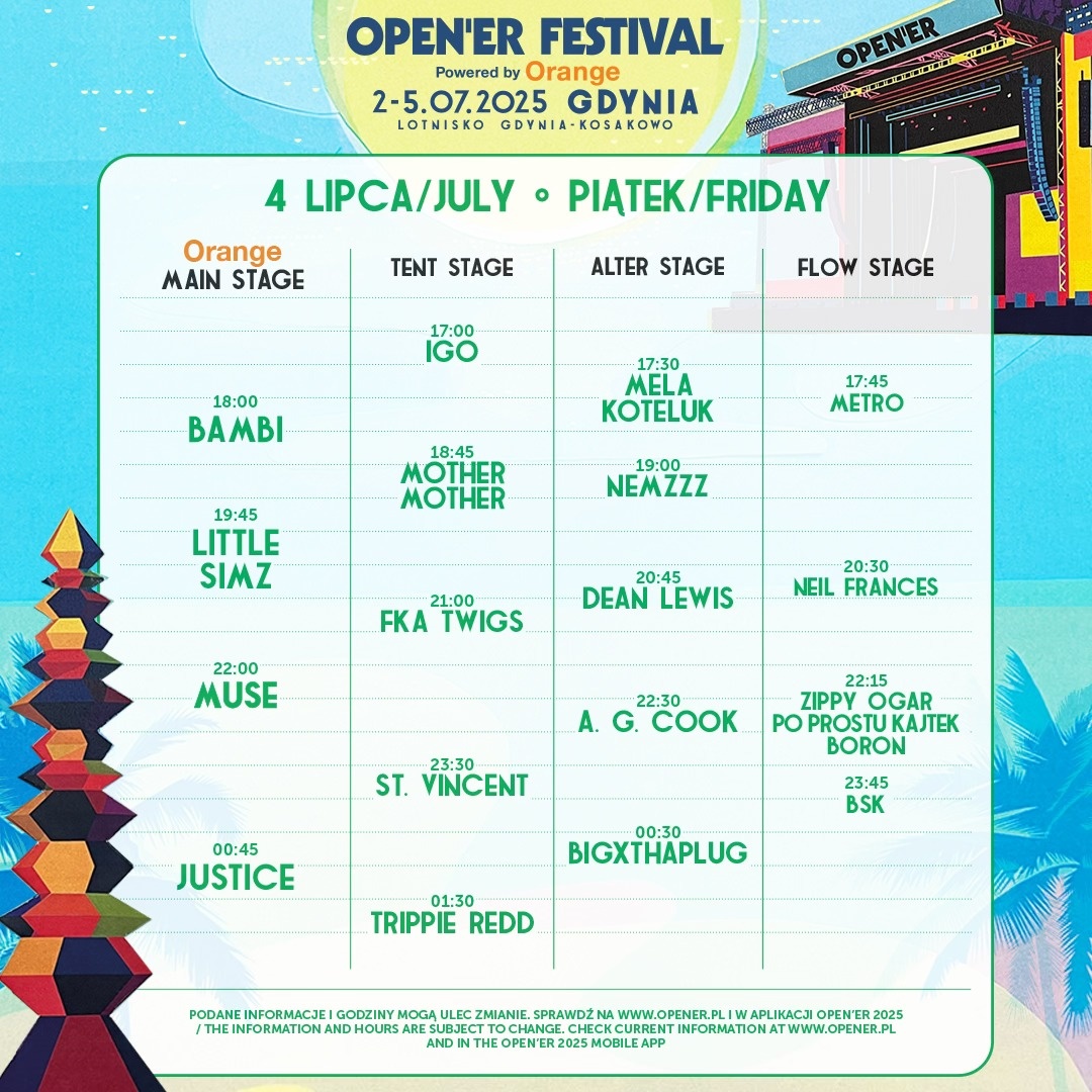 Przypomnijmy, Open’er Festival odbędzie się w Gdyni na lotnisku Gdynia-Kosakowo w dniach 2-5 lipca 2025.
