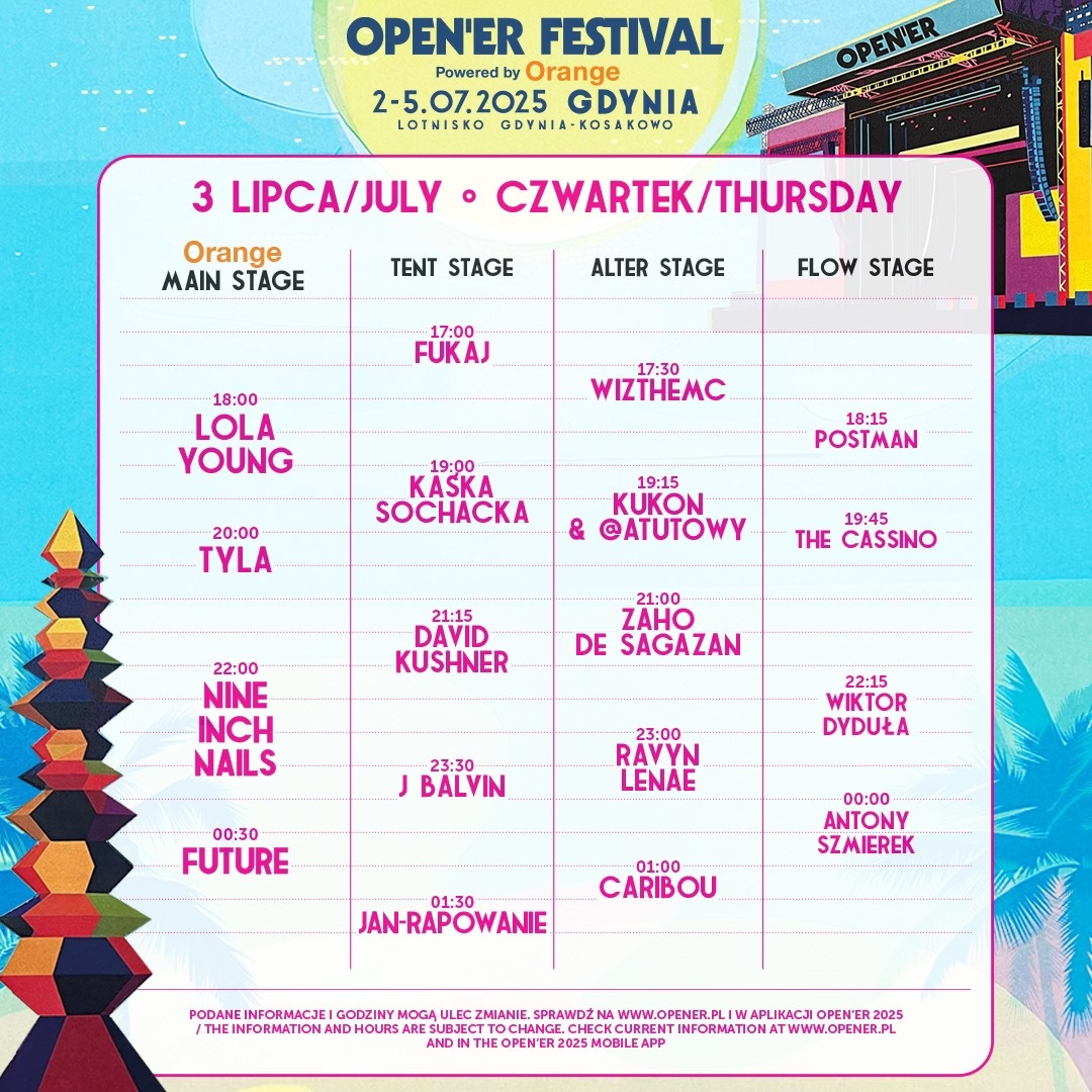 Poniższe grafiki obejmują Orange Main Stage, Tent Stage, Alter Stage i Flow Stage. Sprawdźcie:
