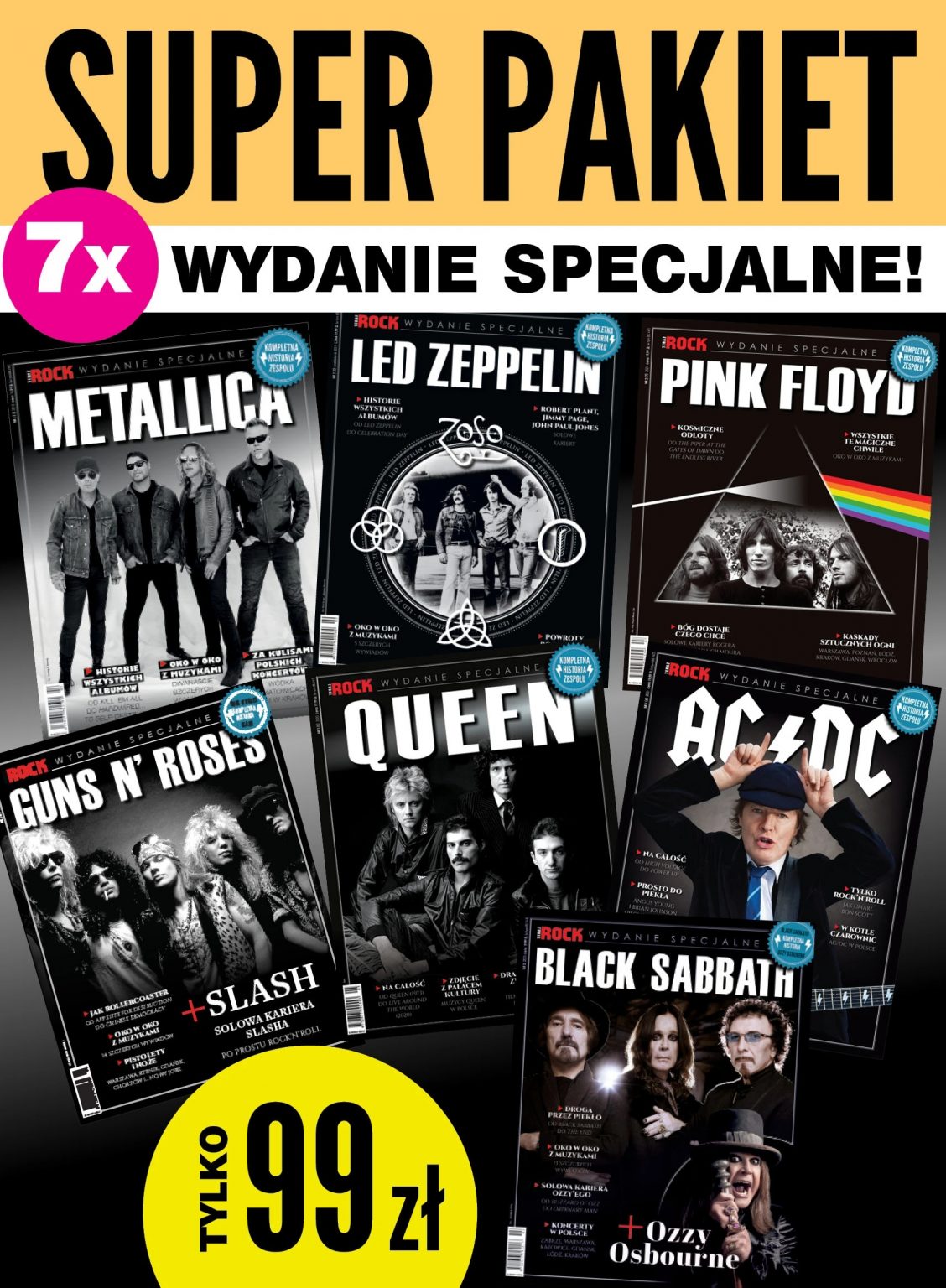 Zamów super pakiet 7 Wydań Specjalnych, dzięki którym poznasz historię i dorobek takich zespołów, jak Metallica, Led Zeppelin, Black Sabbath czy Guns N’ Roses.