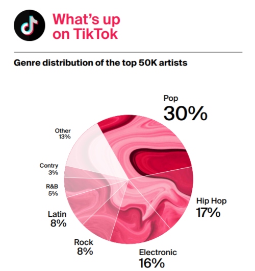 Dość istotne wydaje się badanie dotyczące TikToka, gdyż jest to obecnie najpopularniejsza platforma wśród młodych użytkowników, którzy wkrótce będą głównym targetem muzyki rozrywkowej i największym konsumentem wśród słuchaczy i bywalców koncertów. Tam rock znowu uplasował się na czwartym miejscu z wynikiem 8%, a pop miał największą przewagę (30%).