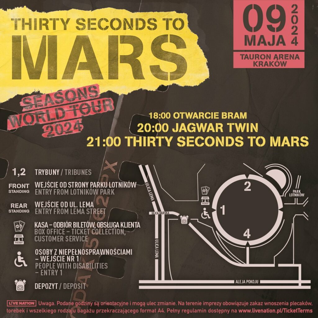 Thirty Seconds To Mars w Polsce – rozpiska godzinowa i inne informacje organizacyjne